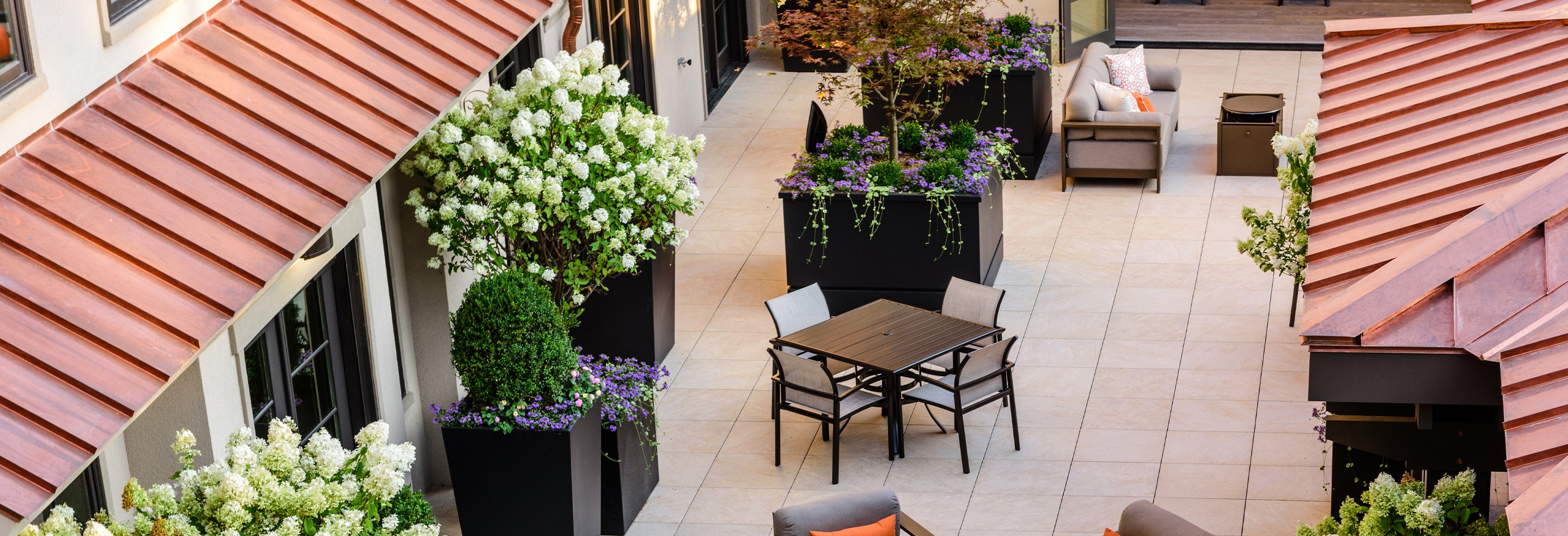 Bu büyük saksıların tümü 0,125" ağır ölçülü, fibeglass dan yapılmıştır ve ağaçları ve küçük dikimleri tutmak için iç desteklerle üretilmiştir. saksılarla, ilgili nihai varış noktalarına bağlı olarak süet bronz ve mat siyah toz boya ile kullanılmıştır